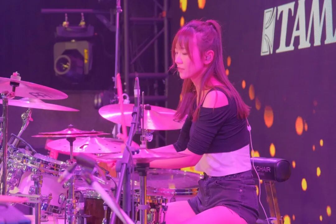 但演奏时气势却完全不输于其他鼓手。