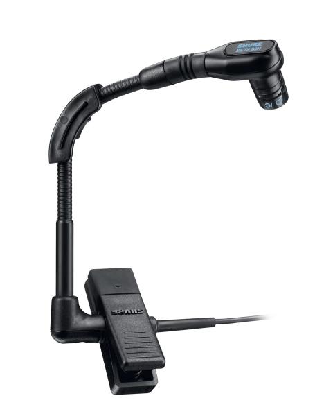 Beta 98H/C电容话筒为铜管乐器和打击乐器提供多功能解决方案 一体式鹅颈非常灵活,颈夹确保话筒稳固和精确定位。