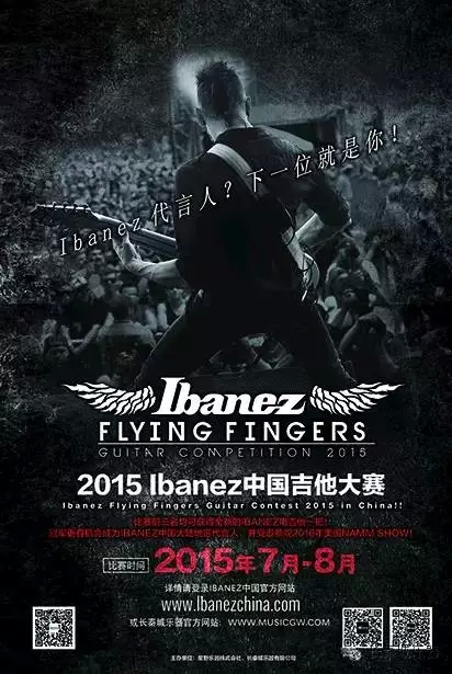 ATTENTION,PLEASE!Ibanez首次在中国举办吉他比赛了! 比赛时间为2015年7月9日-2015年8月25日 比赛页面:http://www.ibanezchina.com/Ibanezflyingfingers 所有热爱【Ibanez】的优秀吉他手们,你们准备好了吗?就在这个夏天,中国,吉他比赛!这是一场没有硝烟的战役!!AREYOU...