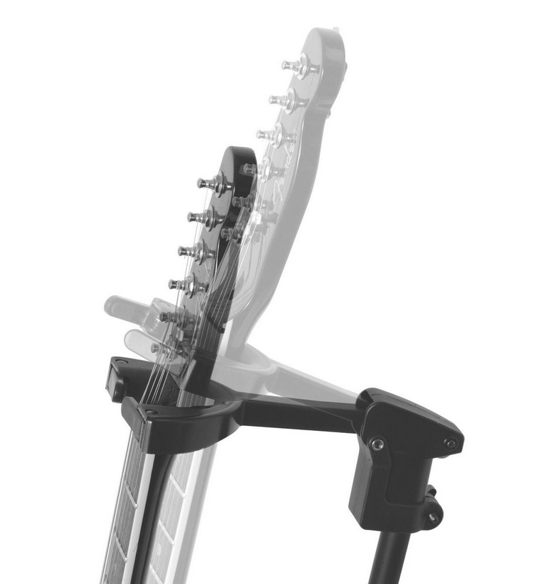 带有一个可自动闭合和松开的上叉,嵌入橡胶体保护吉他不受划伤,中点式凸轮锁调节器,可将高度在76~109cm之间调节。
