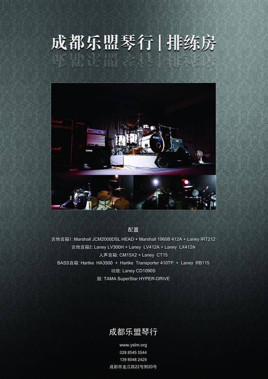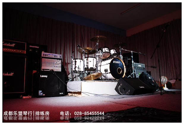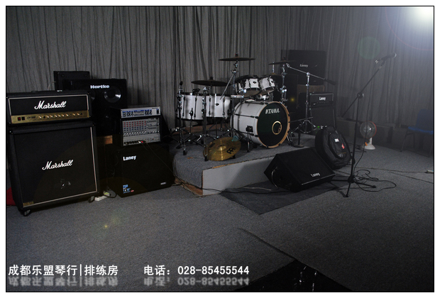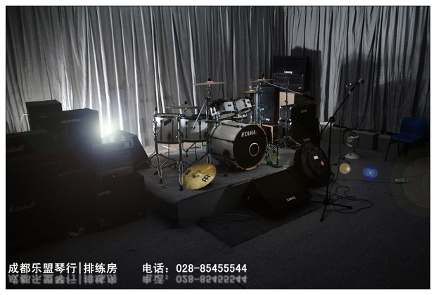 前期有乐队反映,由于面积较大,完全可以作为现场排练mv的拍摄场地,请自备摄像设备,乐盟琴行排练室内有 柔光箱两只,建议拍摄的时候再增加灯光若干组,乐队logo喷绘(悬挂在鼓手后墙面,后面墙面积为3m2 * 7m2,大约22平),为达到完善的效果,可自带电脑录同步,或者后期再制作。